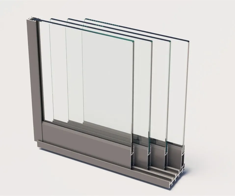 В случае длинных проемов панели, соединенные между собой, раздвигаются от центра в противоположные стороны, при этом первая створка приводит в движение все последующие. Для обеспечения герметичности в раздвижной системе используются межстекольные и щеточные уплотнители.
